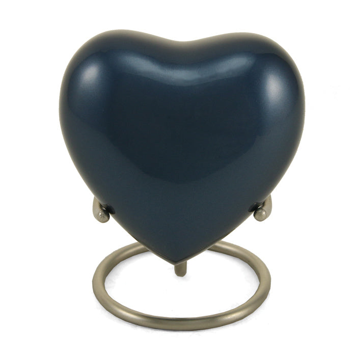 The Full Size Trinity Urn measures 10”H x 6.8” Diameter (200 cubic inches), the Keepsake Mini is 3”H x 1.7” Diameter (3 cubic inches), and the Keepsake Heart is 2.7”H x 2.9”W x 1.6” Diameter (3 cubic inches).